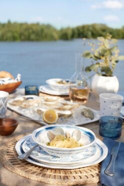 Organic shapes and artisanal designs merge flawlessly on this Blue Bay set. Made from hardworking melamine, the lightweight pieces stand up to kids, poolside parties, and daily duty with carefree ease befitting boho style.