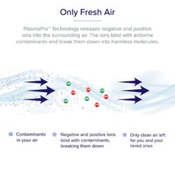 - PlasmaPro technology: generate positive and negative and ions that bind with airborne pollutants and help neutralize them