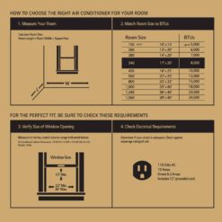 | BTU Cooling Rating (DOE SACC) | 8000 BTU | BTU Heat Rating | No Heat |