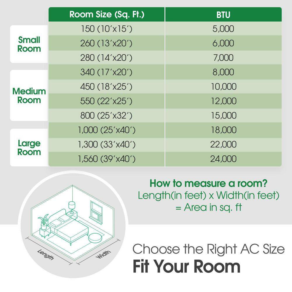 - Estimated cooling area: 250 sq. ft. / room size: 10 ft. x 25 ft.