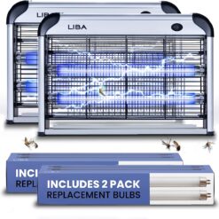 LiBa Electric Bug Zapper (2-Pack) Indoor Insect Killer – (4) Extra Replacement Bulbs – Fly, Mosquito Killer and Repellent – Lightweight, Powerful 2800V Grid, Easy-to-Clean, Removable Washable Tray.