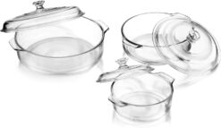 - Instant Size Reference: Easily identify the ideal casserole glass cookware for oven with dimensions clearly embossed on the handles of the three tops; oven glass bakeware has never been easier to organize