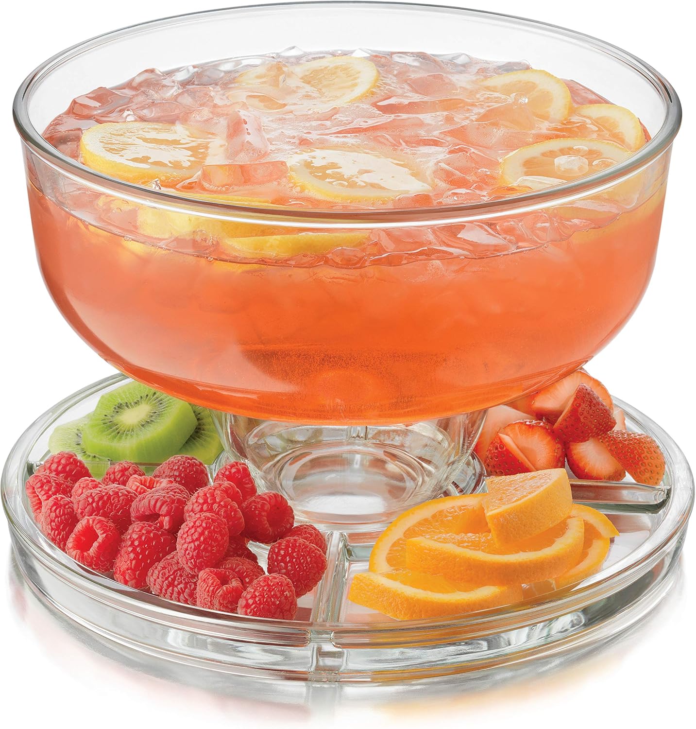 Libbey Selene 6 in 1 Cake Stand, Punch Bowl, Unique Space Saving Glass Cake Stand with Dome, Multi Purpose Cake Stand with Cover To Serve Snacks and More