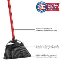 This patented, angled broom is yet another high quality product made by The Libman Company. This broom is great for indoor or outdoor use and features a thick broom head with lots of individually flagged bristles that grab debris and dust in 1 sweep. The strong steel handle has electrostatic-coated paint, which will not chip even if the handle gets dinged. No need for a broom holder, Libman brooms come with a hanger hole for easy storage on any hook. At 11 in. W, this product goes great alongside any dust pan or stand up dust pan. This angle broom can handle pet hair, saw dust, leaves, small sticks, small amounts of snow, dirt, crumbs and more.