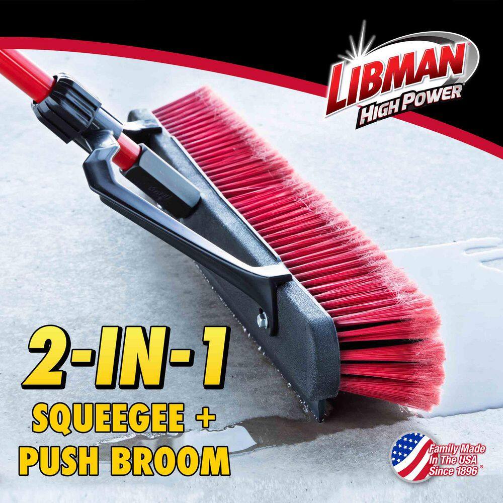 Whether cleaning fine dust, large debris, or pushing water, the Libman 24 in. Multi-Surface Squeegee Push Broom captures everything across almost any surface. The 24 in. polymer broom head clears away all sizes of debris with its flexible and firm fibers made from recycled PET plastic bottles. The 60 in. L steel handle has electrostatic-coated paint that forms to any dings and resists chipping. This squeegee broom also comes equipped with a hanger hole on the handle grip for convenient storage – no need for a fancy broom holder.