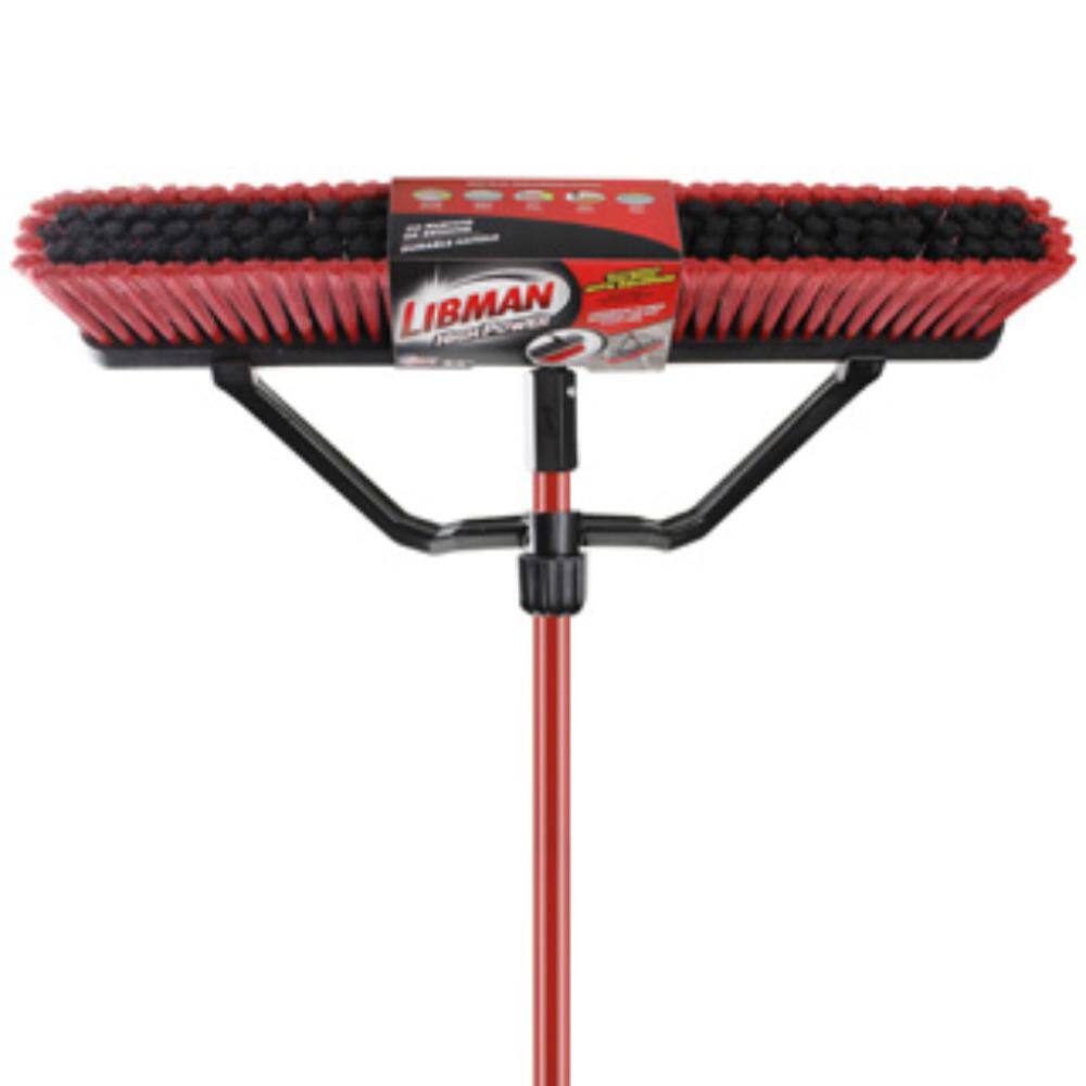 - 24 in. wide broom head: The 24 in. wide Libman broom features a sturdy resin block that won’t warp like wood, ensuring durability and long-lasting use