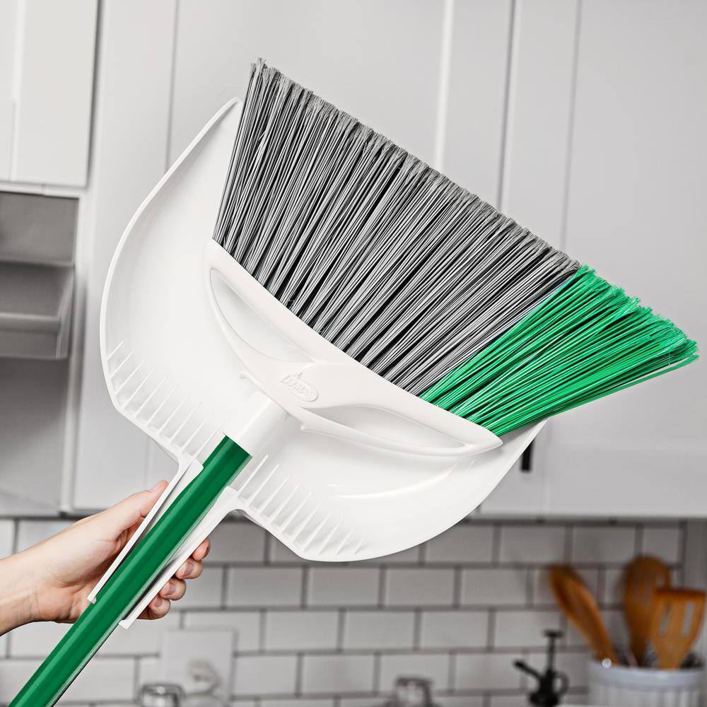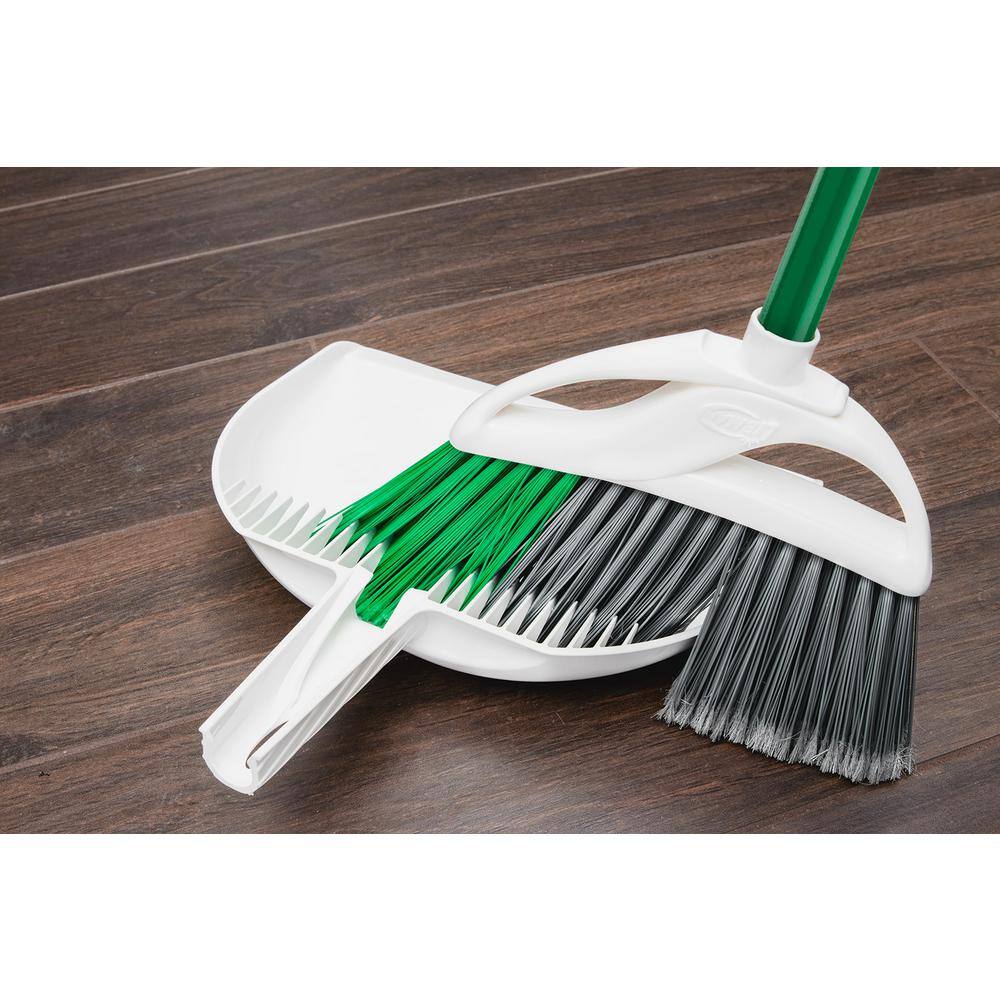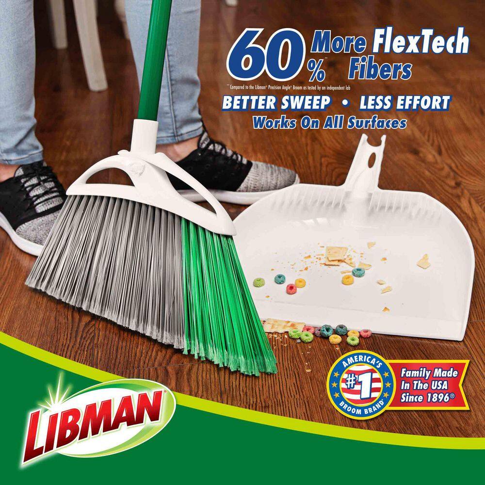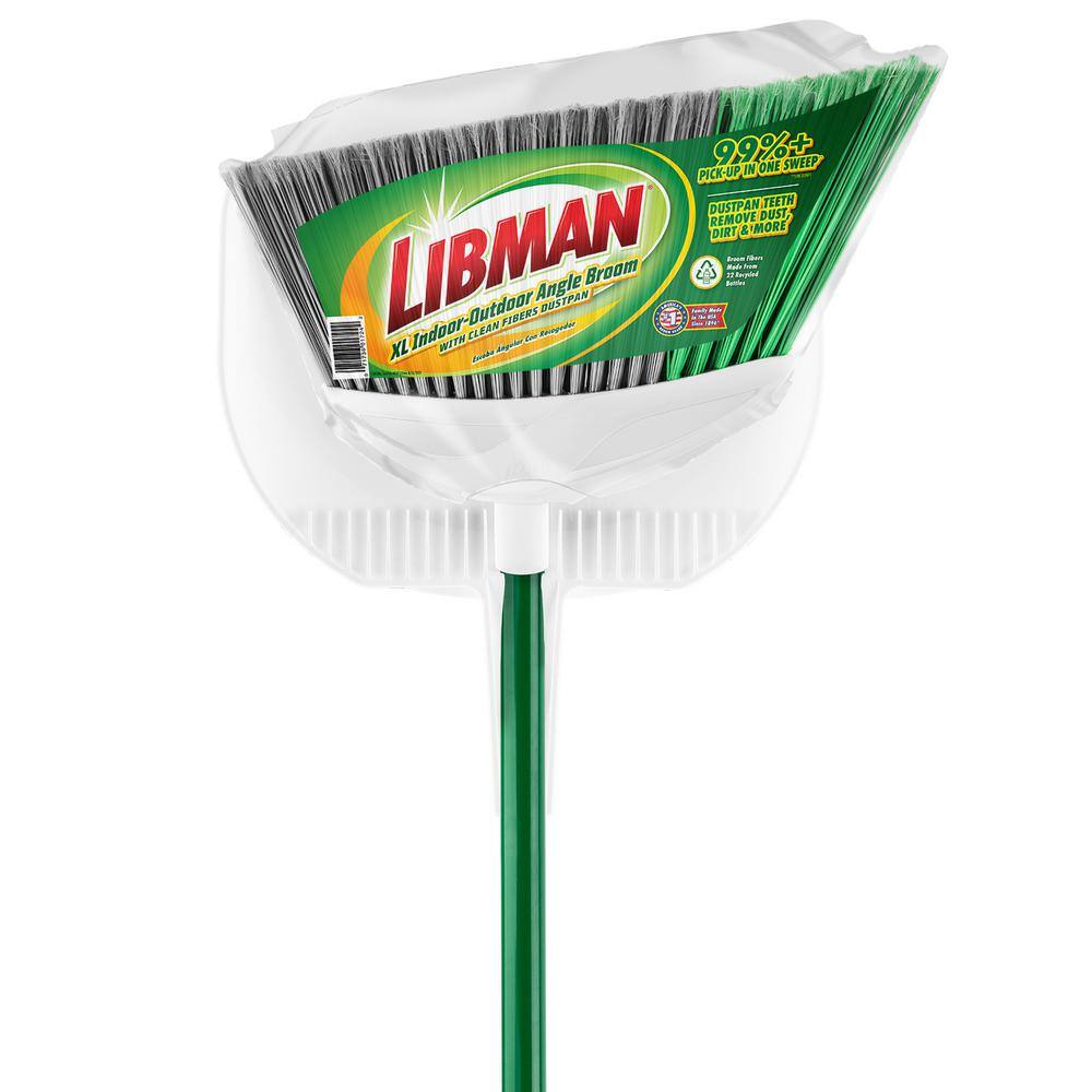 This extra-wide angle style broom and dust pan is great for household and heavy-duty applications. When it comes to brooms, Libman truly stands out in quality and durability, producing this dust pan and broom set from raw material to finished good in the USA. Excellent for indoor and outdoor use on all surfaces. The extra wide broom head and all-surface fibers remove over 99% of dust, dirt and hair in 1-sweep. It features a solid polypropylene broom block for added strength in heavy-duty cleanup situations. Its fibers are precisely cut and angled to reach under cabinets and in tight corners. The longer life, environmentally-friendly broom fibers are made from recycled plastic bottles. Its high quality steel handle is electrostatic powder coated to prevent rust and ensure durability. No need for a special broom holder – this dust broom and pan set has a hanger hole for easy storage. Libman is America’s #1 Broom Brand. NEW update to the dust pan that now has long teeth to clean out the broom fibers directly into the dust pan.