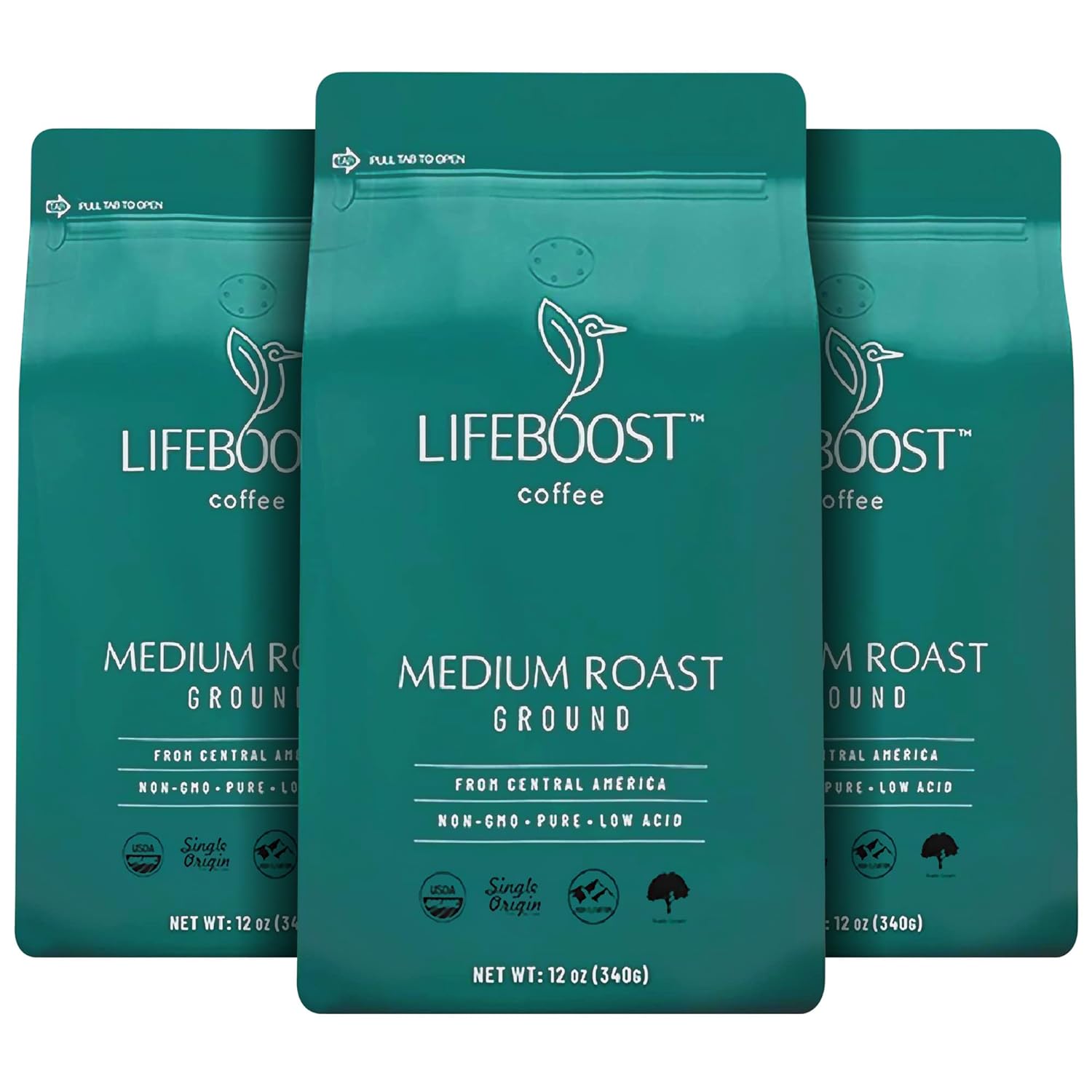 Lifeboost Coffee 3 Pack Medium Roast Ground Coffee – Low Acid Single Origin USDA Organic Coffee – Non-GMO Ground Coffee Third Party Tested For Mycotoxins & Pesticides – 12 Ounces