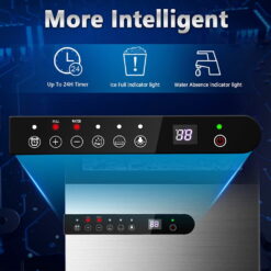 - [Smart for Home and Commercial Use] – The 24 Timer allows you to set it auto on/off at anytime in the 24H. What’s more, in order to let you more directly see the ice full and lack of water, we equipped it with sensors and indicator lights to remind you to operate in time.