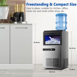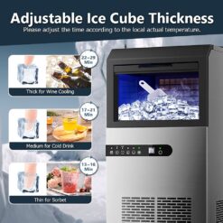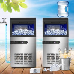 - [Easy to install] – Take the commercial ice machine out of the package, connect the tap with the water inlet through the tube. Then connect to the floor drain. Finally, plug in the power plug to start your new life.