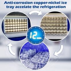 - [Low Noise Ice Making] – Although this machine makes ice quickly, it doesn’t make much noise. So it won’t disturb your customers or friends when it’s making ice cubes. It is quite suitable for leisure and entertainment places.