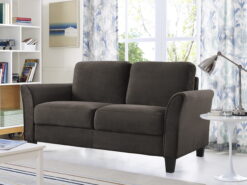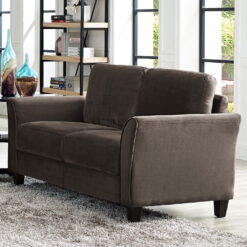 Lifestyle Solutions Alexa Loveseat with Curved Arms, Coffee Fabric