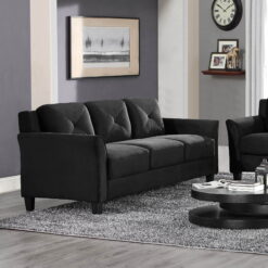 Lifestyle Solutions Taryn Sofa with Curved Arms, Black Upholstery