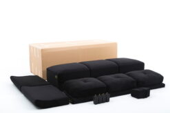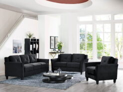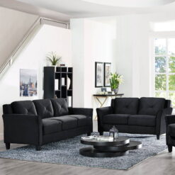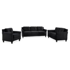 The Lifestyle Solutions Taryn Curved Arms Sofa upholstered in Black Fabric is the three-seat option of this versatile stationery set designed to fit your space and style. Built for lasting quality, the Taryn combines form, function, and ease of assembly designed for eclectic life. The design lines and scale of the Taryn Sofa bring a modern touch to spaces large and small with equal elegance. High-density foam cushions and curved arms hug your body and are sure to become your favorite place to let go of the day and relax in pure comfort. Combining premium Black upholstered fabric and solid eucalyptus wooden frame, this durable plush Sofa invites you to rest in the knowledge of years of enjoyment to come.