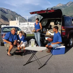- Folded Table Dimensions (in): “38”” L x 18″” W x 2.75″” H “