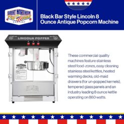 Lincoln Popcorn Machine – 8oz Popper with Stainless-Steel Kettle, Reject Kernel Tray, Warming Light and Accessories by Great Northern Popcorn (Black)
