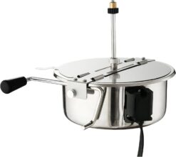 - “QUALITY MATERIALS – GNP has been selling superior popcorn poppers for home use for over 10 years, using only the best materials. This electric popcorn popper features tempered glass food zones for safety and a powerful 850-watt stainless-steel kettle. “