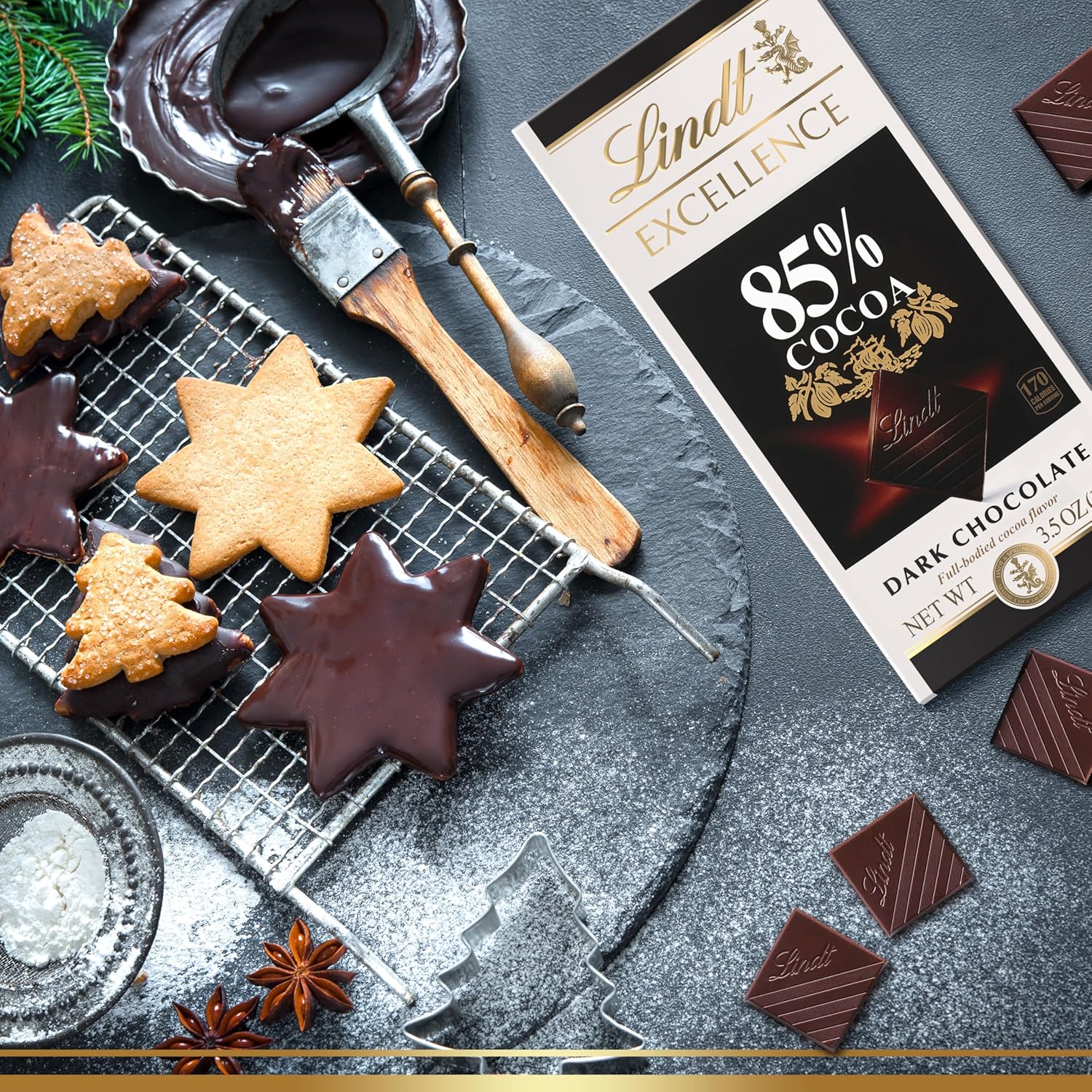 - Twelve (12) 3.5 oz. Bar of Lindt EXCELLENCE 85% Cocoa Dark Chocolate Bar