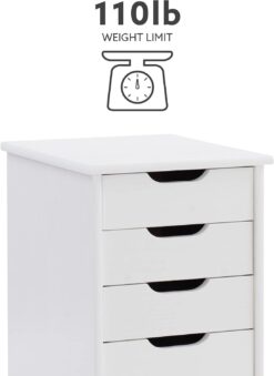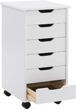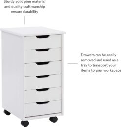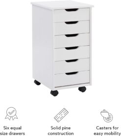 Linon Home Decor Products Corinne Six Drawer Storage, White Wash Rolling Cart