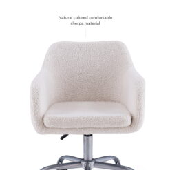 Add contemporary style to your workspace with the Coco Office Chair. Comfy sherpa material adorns the wide back, high arms, and thick cushioned seat. The adjustable seat allows the chair to work with a variety of desks and work tables, while the silver base and black wheels provide for smooth movement throughout your work area. The natural sherpa fabric brings a warm and inviting aura to any room.