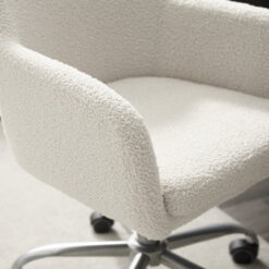 Add contemporary style to your workspace with the Linon Rylen Sherpa Office Task Chair. Comfy sherpa material adorns the wide back, high arms, and thick cushioned seat. The adjustable seat allows the chair to work with a variety of desks and work tables, while the silver base and black wheels provide for smooth movement throughout your work area. The natural sherpa fabric brings a warm and inviting aura to any room.