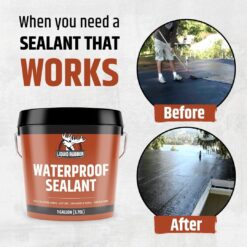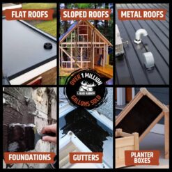 - PROTECTIVE FINISH FOR – Flat roofs, metal roofs, sloped roofs, planter boxes, foundations, sheds, basements, metal, wood, concrete and more. KIT INCLUDES: One 5 Gallon of Waterproof Sealant, One 4 pack of 10.2 Ounce Caulk, and One Roll of 4″x50′ Seam Tape