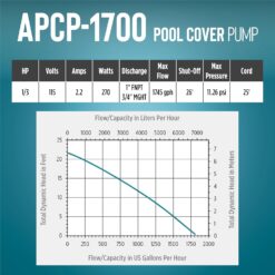 Little Giant APCP-1700 115-Volt, 1/3 HP, 1745 GPH, Automatic, Submersible, Swimming Pool Cover Pump with 25-Ft. Cord, Light Blue, 577301