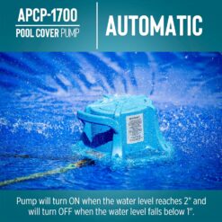 - APPLICATIONS: designed for automatic removal of water from pool covers, boat covers or rooftops – pump activates in 2″ of water and shuts off when water drops to 1″