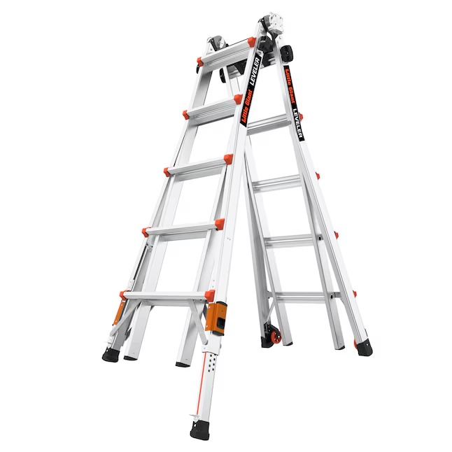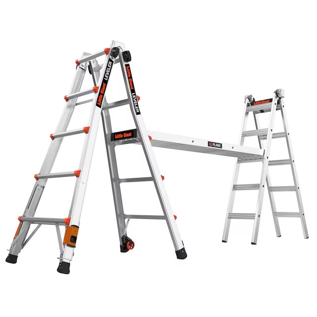 Using a ladder outdoors has always had its challenges, but the Little Giant® Leveler™ 2.0 changes that experience. Whether you work on unlevel ground or set up your ladder on a staircase, the Leveler can handle it. Meeting or exceeding all OSHA and ANSI standards, the Leveler is rated to hold 300 lbs. in all configurations; and in A-frame, it will hold 300 lbs. on both sides. Uneven terrain? Not a problem. With the ratchet™ leg levelers, you can adjust the ladder’s legs in seconds, allowing you to stabilize the ladder on unlevel ground. The retractable legs yield more than 7 inches of leveling adjustment. The Leveler is the ladder that helps you complete any given task with ease. Set up the ladder in different configurations that suit the project at hand, like A-frame, extension, staircase, 90-degree or trestle-and-plank scaffolding. It’s fast and easy.