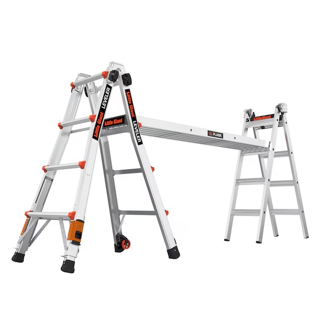 • Multi-position ladder converts to A-frame, extension, trestle-and-plank, 90-degree and staircase with ease