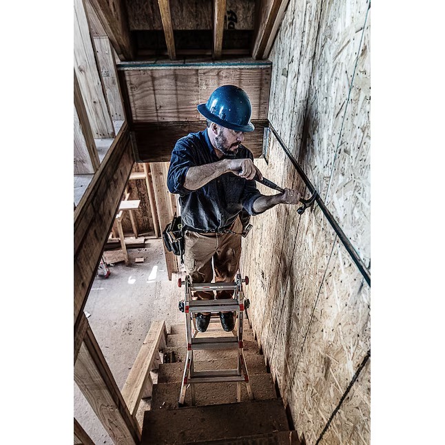 Having the right ladder for the job is crucial to your project’s success. If you are looking for a versatile ladder that will help you get the job done time after time, the Multi; is the ladder for you. The Multi meets or exceeds all OSHA and ANSI standards and is available in ANSI IA and IAA ratings. The IA ladder will hold up to 300 lbs., and in A-frame, will hold up to 300 lbs. on both sides. The IAA ladder holds up to 375 lbs., and when placed in A-frame, holds that much on both sides.