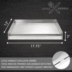 LITTLE GRIDDLE Sizzle-Q SQ180 100% Stainless Steel Universal Griddle with Even Heating Cross Bracing for Charcoal/Gas Grills, Camping, Tailgating, and Parties (18″x13″x3″)