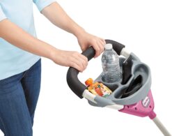 - STORE WHILE STROLLING – Adults can bring along whatever they need thanks to the spacious basket/bucket behind the seat. Parents’ push handle has a tray and cup holder