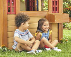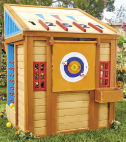 - 5-IN-1 – This sturdy wooden playhouse features different games on every surface!