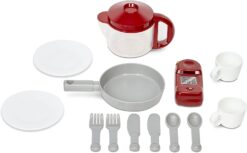 - Includes: 1 Coffee Pot, 2 Plates, 2 Cups, 2 Forks, 2 Knives, 2 Spoons, 1 Frying Pan and 1 Phone; Made in USA