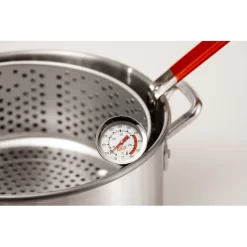 - Includes 30qt pot, basket with lift hook and lid plus 10qt pot with fry basket and oil thermometer