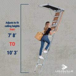 Louisville Ladder AH2240MG-R5 Energy Efficient 7 ft. 8 in. to 10 ft. 3 in., 22.5 in. x 54 in. Insulated Aluminum Attic Ladder, 375 lbs. Load Capacity