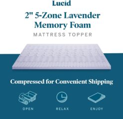LUCID 2 Inch 5 Zone Lavender Memory Foam King Mattress Topper