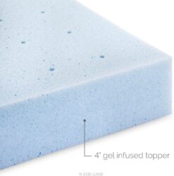 The LUCID 4 Inch Gel Memory Foam Mattress Topper adds new life to and enhances the comfort of an existing mattress. LUCID’s thickest mattress topper, this ultra thick comfort layer is made of plush, gel-infused memory foam for supreme comfort. LUCID memory foam compresses evenly beneath the unique weight and shape of a body, conforming to curves to relieve pressure at the shoulders and hips. Top quality foam is infused with advanced gel material that captures and distributes heat for a more comfortable sleep temperature. Mattress topper has a ventilated design that improves breathability for refreshing sleep.