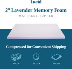 LUCID 4 Inch Lavender Infused Memory Foam Mattress Topper – Ventilated Design – Queen Size