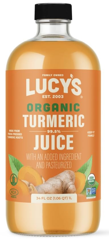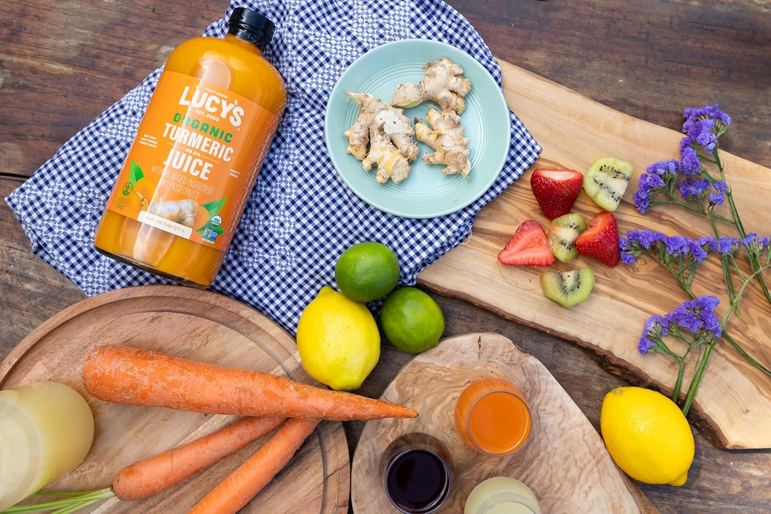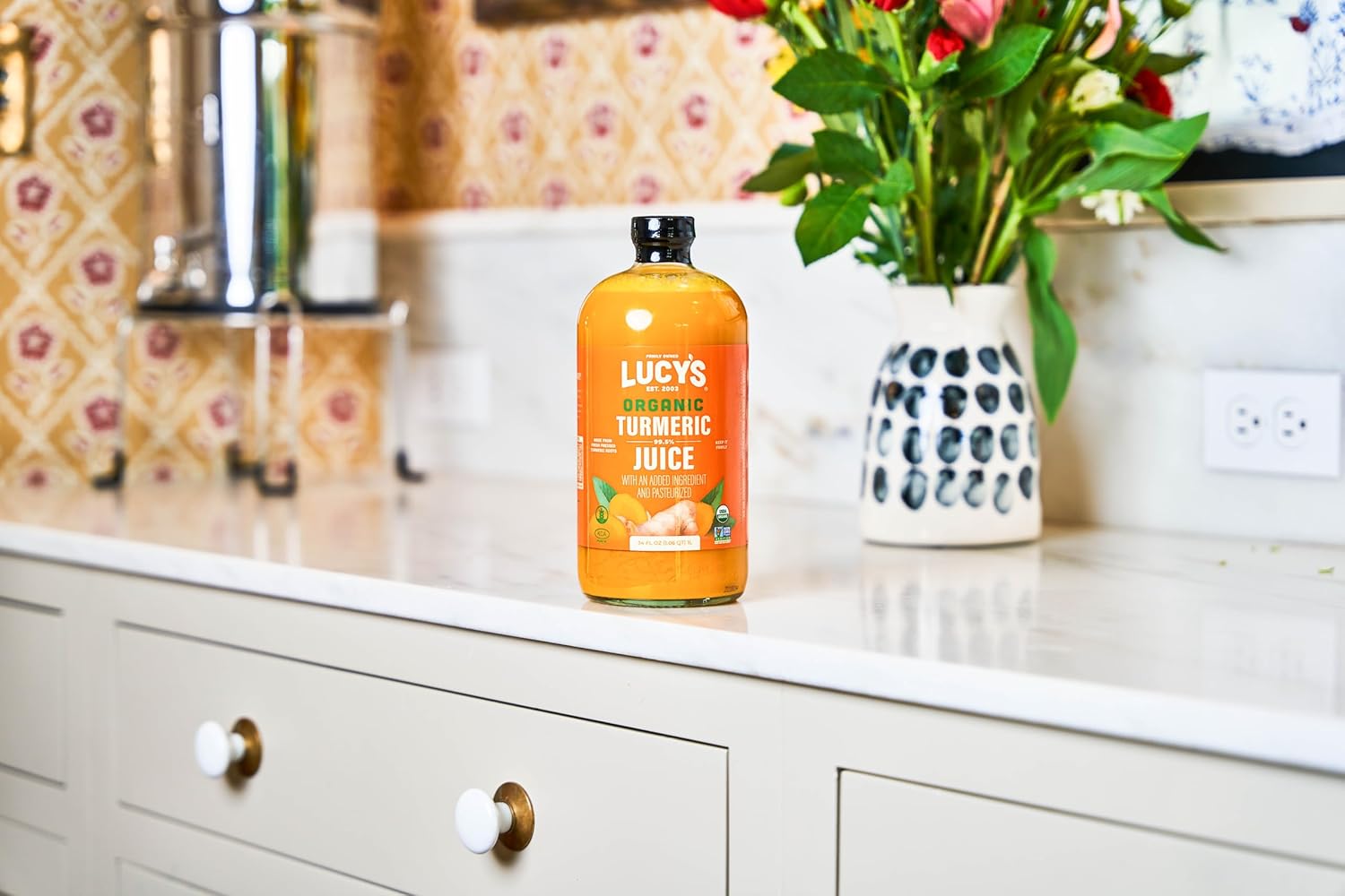 - MADE FROM FRESH PRESSED – Lucy’s Organic Turmeric Juice is absoultely special. Why? We make our Turmeric Juice by bringing in Organic Turmeric Roots to our facility and fresh pressing everything in-house! We then pasteurize the product for your safety and and bottle it in beautiful thick glass.