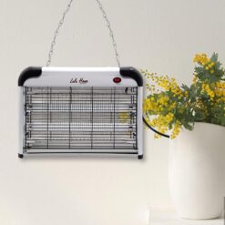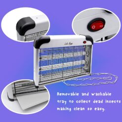 - Hang Or Stand: Lulu Home indoor insect zapper is designed thin and modern with non-clogging and non-rust mental grid. The dimension is 15″ x 11″ x 4″. It can be placed on a flat surface, or hung with the accompanying chain attaching to the hooks on the top of the zapper.