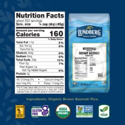 - HEALTHY MEALS START WITH LUNDBERG BROWN RICE: With so many versatile ways to enjoy Lundberg Organic Brown Basmati Rice in your healthy food recipes, stock up on our 25-pound brown rice bulk bags.