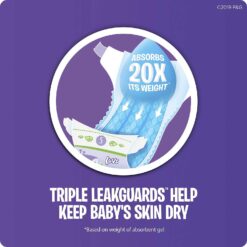 - Triple Leakguardsâ„¢ with 3 absorption areas help keep baby’s skin dry