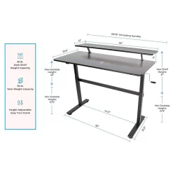 Luxor 55″ Standing Desk with Shelf + Hand Crank, Black