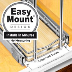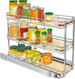 - PERFECT FOR NARROW CABINET SPACES! our space-saving design needs only 8-inches of width to give you three 21-inch deep drawers that bring bottles, cans, and spices to your fingertips – elegant laminated wood, polished metal, and a brilliant anti-rust chrome finish make the inside of your cabinets as beautiful as the outside