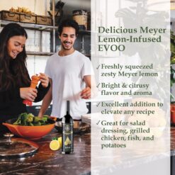 - 【COMBINE EXCEPTIONAL HEALTH BENEFITS* WITH GREAT TASTE】Unlike other EVOOs on the market that have a bland taste and high acidity, our extra virgin EVOO has a low acidity level, and is known for its bright and citrusy aroma and flavor. The dynamic duo of freshly squeezed Meyer lemons combined with the creaminess of our cold-pressed Koroneiki olives is a versatile addition that will elevate any recipe! Excellent lemon oil for cooking, in dressings, grilled chicken, fish and seafood.