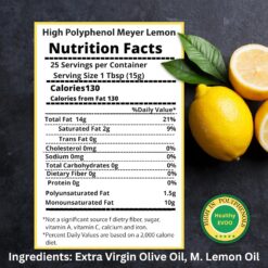 - 【AWARD-WINNING MEYER LEMON INFUSED OLIVE OIL】 Produced by one of the world’s top ranked Greek EVOO producers (EVOO World Ranking), our Meyer lemon-infused high polyphenol extra virgin olive oil is cold pressed, unfiltered, unblended, unrefined, Health Claim Accredited, and EFSA-approved for containing a high unsaturated fatty acids content. It is one of the most awarded EVOOs in the world for its premium quality and high nutritional value.