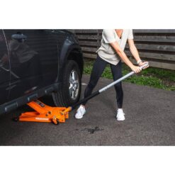 Raise your car, truck or SUV with this Maasdam 3-ton low-profile floor jack. The dual-pump design delivers a quick lift, and the rear swivel caster wheels enables easy positioning. Built to last, it features professional-grade steel construction.