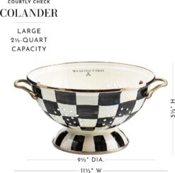 MACKENZIE-CHILDS Enamel Colander, Decorative Kitchen Strainer, Large, Black-and-White Courtly Check